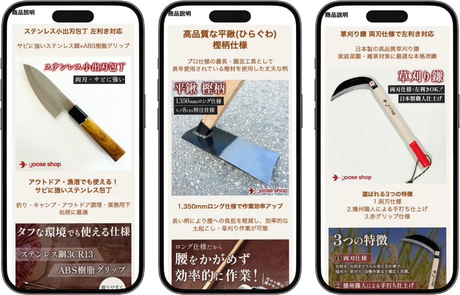 オーナーの優しい人柄が伝わるように作成いたしました。人の暖かさを感じられる写真を複数使用し、信頼感を与える青色をメインカラーに採用しています。